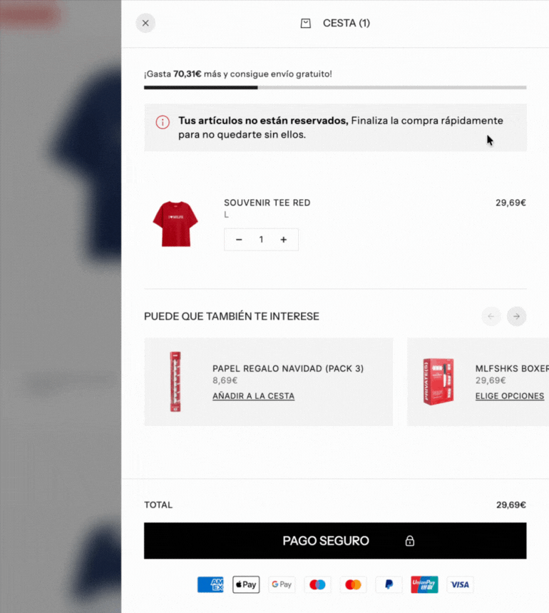Sidecart milimétrico para maximizar la cantidad de usuarios que llegan al pago y aumentar el valor medio por pedido.